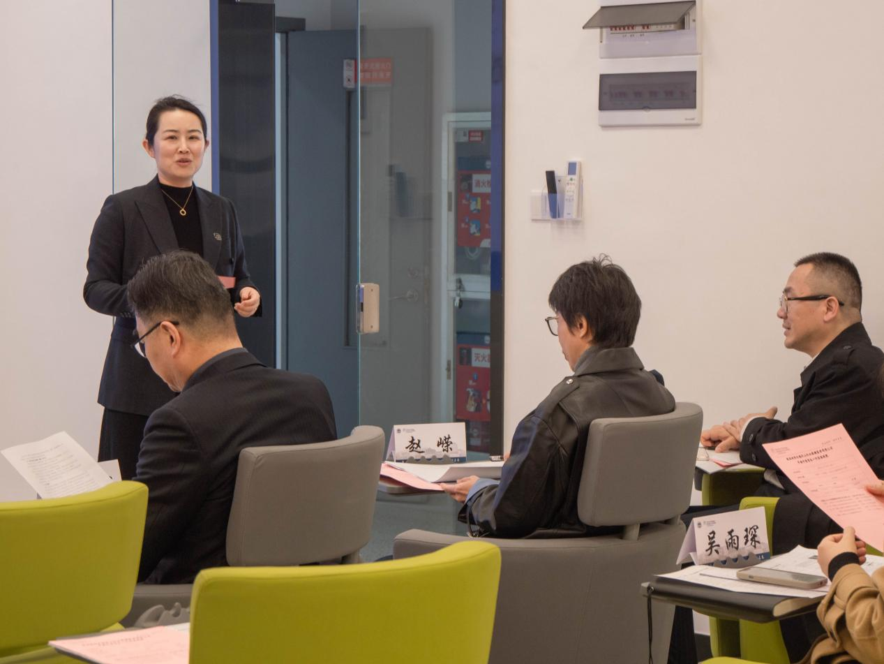 本次复赛分为复赛评审和策展讨论两个环节。首先,由我院党委副书记江琳娜向无锡灵山文化旅游集团有限公司华晓宁董事长一行致欢迎辞,系统介绍了大赛的背景、目标及活动组织过程,并宣读评审细则。她强调,“万象归一·中华魂——龙文化主题创意设计大赛”旨在通过龙文化这一中华民族共同的文化图腾,铸牢中华民族共同体意识,既构建文化认同共同体,又打造产教融合实践平台,建立“创意孵化—产业转化—市场验证”的创新人才培养机制,实现民族文化赓续与文旅产业升级的双向赋能。