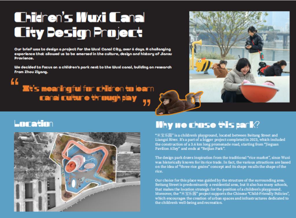 最后,黄昊老师宣读了本次暑期学校的获奖名单。经过综合评审,《一脉千年·运河古今——交互式公共装置艺术设计》《琼·漪——基于景观基因图谱的扬州非遗文化体验快闪店设计》《Echo Story Dome》三个小组获得“最佳创意奖”;《邗月映膳——运河文化主题的淮扬菜餐具设计》《共憩南长——南长街景观休憩空间微改造》两个小组获得“最具商业潜力奖”;《漕脉椽光——浮舟穿影忆河途以漕脉文化为主题的沉浸式展馆体验设计》《锡城桥记——无锡桥梁信息可视化与文创设计》两个小组获得“最佳视觉表现奖”;《The Chuanyi Boat (传艺舫)——A permanently moored cultural boat, as a platform for local craftsmen to pass on their skills》《“运河粮仓·鱼米之乡”大运河无锡三里桥段码头集市空间设计更新研究》两个小组获得“优秀团队协作奖”。