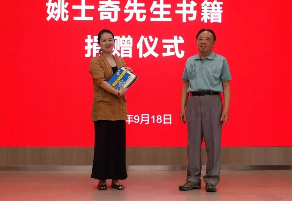 致辞环节后,活动进入姚士奇先生书籍捐赠仪式。姚士奇先生将其多年研究成果——1990年出版的《玉宝和中国文化》、2004年及2014年版《中国玉文化》,以及2023年推出的《中国玉文化丛书》(全套6册)郑重赠予学院。江琳娜副书记代表学院上台接受捐赠,王维青书记为姚士奇先生颁发捐赠证书,感谢他以学术著作反哺母校教育事业,为师生研究中国玉文化提供宝贵资料。