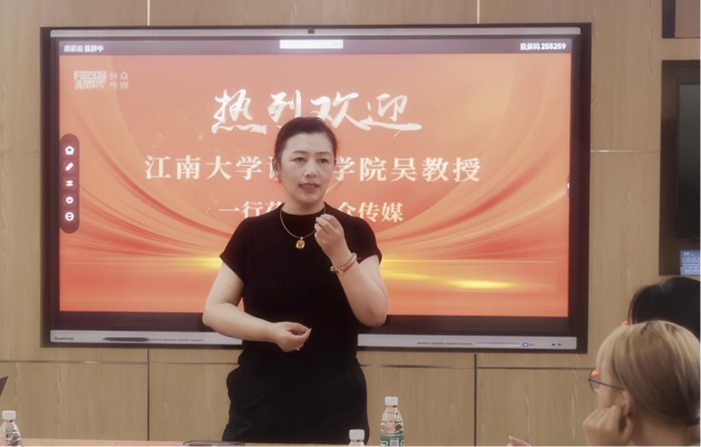 随后,分众传媒无锡公司总经理刘纾亦系统介绍了分众传媒的业务规模与媒体矩阵。梳理了分众传媒的发展历程、点出了当前融媒体内容与消费场景深度融合带来的新机遇、同时表达了对未来与高校深化合作,共同探索传媒新形态的期待。