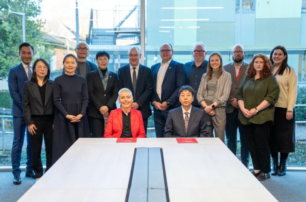 在英国贝尔法斯特女王大学,代表团一行与全球事务副校长Margaret Topping会面,该校国际处处长、医学健康与生命科学学部国际事务部长、生物科学学院院长、国际事务副院长、本科教育主任、研究生教育主任等一行9人参与会谈。双方表示将在已有合作基础上进一步拓宽交流范围,在设计学等领域加强合作。
