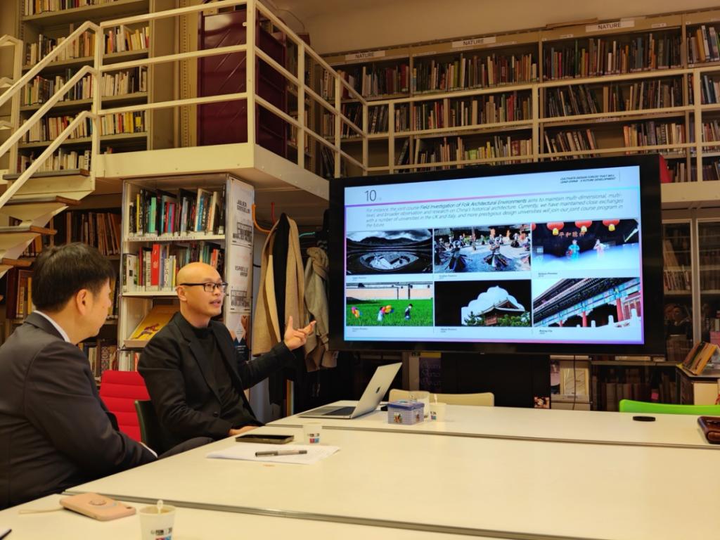 及国际交流版块的整体情况,双方在设计类专业开展深度交流达成共识,将在师生互访、国际工作坊、合办设计与时尚展等领域开展合作。该校与我校同属于CUMULUS设计联盟,是法国顶尖设计类高校,在时尚设计、陶瓷艺术、环境设计及平面设计等方面享有极高声誉。