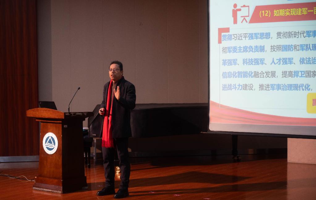 马克思主义学院教授陈绪新为全体师生党员作了党的二十届四中全会精神专题宣讲报告,以《概念·蓝图·现实——以中国式现代化全面推进强国建设和民族复兴伟业新局面》为主题,系统阐述了中国式现代化的中国特色、本质要求与战略部署,深化了师生对新时代党和国家事业发展和党的二十届四中全会精神的理解与把握。