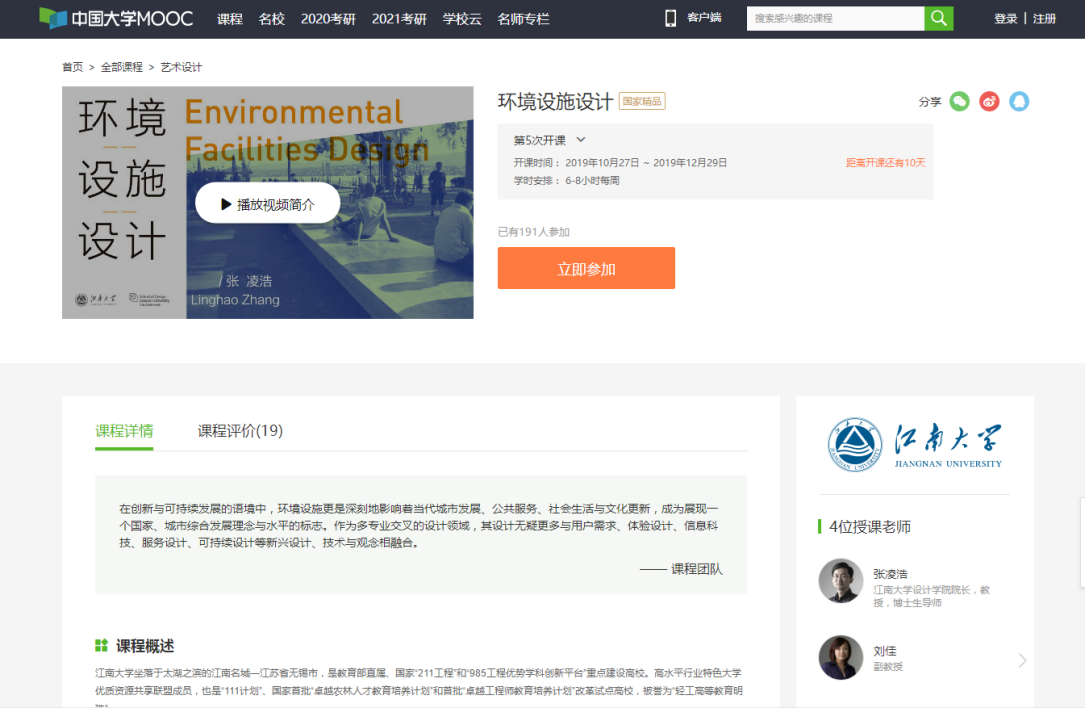 国家精品在线开放课程《环境设施设计》即将于2025年4月7日在中国大学MOOC平台开课。