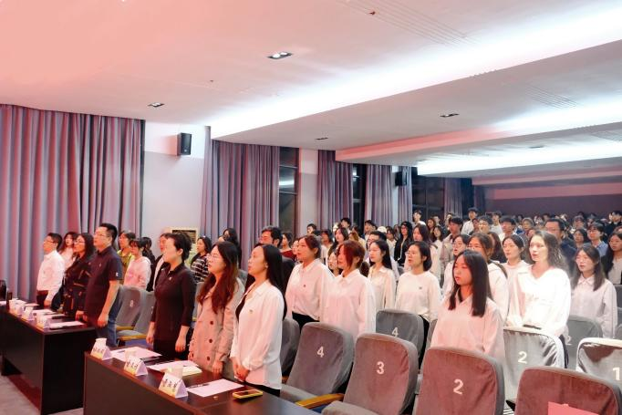 党委书记王维青,党委教师工作部副部长陈炜昀,党委副书记兼副院长江琳娜,专职组织员陈祥洁,副科级干部余文诗,党建辅导员曹淑慧、滕影以及全体培训班学员参加仪式。仪式由培训班班主任滕影主持。