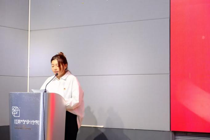 暑期青马工程”的实习过程,分享了自己想要加入中国共产党的心路历程,并从这些经历中逐渐领悟到“从群众中来,到群众中去”的真正涵义,呼吁在座的设计学子要贯彻全心全意为人民服务的宗旨,将党的理念、政策融入自己的设计创作中,为中华民族伟大复兴的中国梦贡献蓬勃的设计力量。