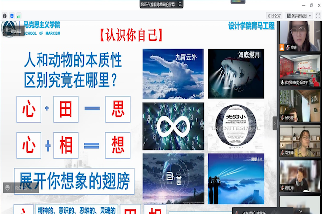 马克思主义学院陈绪新教授以“思想政治教育自觉的‘三点一线’”为题进行党课第一讲。陈教授从“思想政治教育自觉的价值起点”即“认识你自己”为切入点,阐明人应该加强自觉意识指导并用于实践活动,强调了思想之于人的重要性,引导学员将思想融入行动。在阐释“思想政治教育自觉的历史视点”这一视点时,陈教授结合中国共产党三个重大历史问题决议,生动形象地回答了马克思主义为什么行、中国共产党为什么能、中国特色社会主义为什么好这三个问题,并呼吁大家回顾党的百年历程,从中积累经验、汲取磅礴伟力。最后,陈教授深情寄语学员,设计者的灵魂与情怀应具有生活的温度与艺术的高度,在实现中华民族伟大复兴、实现社会主义现代化强国的历史进程中,号召青年朋友“不做过客,更不是看客,而要做真正的实践者、推动者,也是见证者、获益者。”