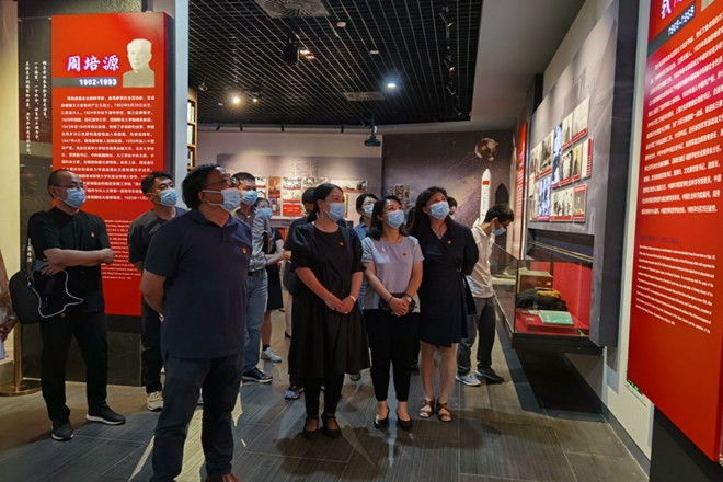 一行人首先参观了“肩负民族复兴期望的无锡人”专题展区,聆听了包括陆定一、秦邦宪、王选、荣毅仁等在内的13位在民族复兴大业中做出卓越贡献的无锡籍仁人志士的革命史、奋斗史,通过一件件历史文物和一个个生动的故事,深切感怀了先辈们为祖国、为民族发展奋发图强的奋斗精神和为国为民不惜牺牲一切的坚定品格。随后,一行人透过“血与火的城市记忆——无锡革命简史”专题展区,了解了无锡人民在中国共产党领导下进行新民主主义革命的艰难曲折历程,和从五四运动直至无锡解放的壮丽历史画卷。在鲜红的党旗下,全体人员在党委书记邱建平带领下,重温了入党誓词,坚定入党初心。