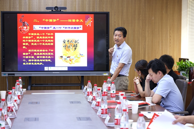 顾德学以《中国梦的内涵》进行了专题微党课,他以习近平总书记“实现中华民族伟大复兴是中华民族近代以来最伟大的梦想”为主题,分享了中国梦即是“世界梦”“和平兴国梦”“和平强军梦”和“幸福人生梦”的深入理解。