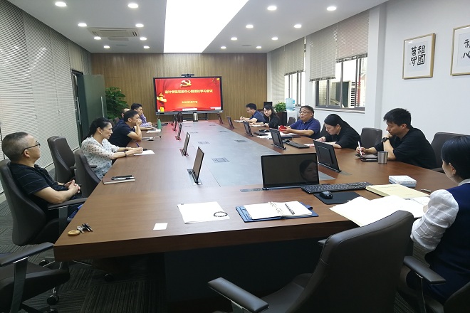 邱建平书记首先带领中心组成员,回顾和温习了《中国共产党章程》的重点内容,结合新党章中的新要求,特别是随着我国社会主要矛盾转化的新判断,提出要积极发挥设计力量,为人民日益增长的美好生活需要服务;同时结合新时代中国共产党“实现“两个一百年”奋斗目标,实现中华民族伟大复兴的中国梦”的新使命等内容进行了重点学习和讨论。