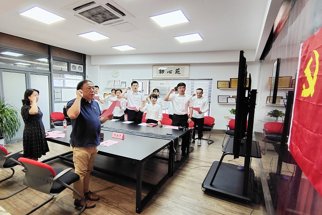 随后,党委副书记王晖领誓,全体新党员进行宣誓。句句铿锵有力,字字掷地有声。简短而庄严的仪式、洪亮且郑重的誓言,鲜明地表达了新党员们对党和人民的忠诚。