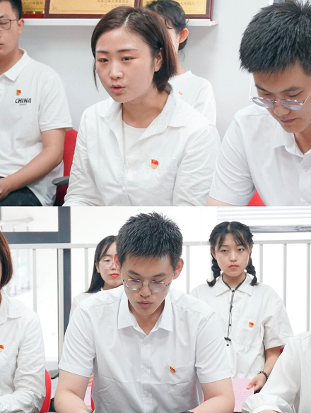 仪式开始,全体起立奏唱国歌,现场气氛庄严肃穆。新党员代表第39期分党校培训优秀学员焦瀚同学、士兵计划张君君同学分别从不同的角度分享了自己的入党心路历程及所思所想,他们表示将不断提升思想政治修养,树立终身学习的观念,牢记全心全意为人民服务的宗旨,争做一名无愧于党、无愧于祖国和人民的新时代青年。