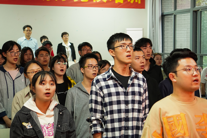 开班典礼在庄严的国歌声中拉开帷幕,王晖老师首先作动员讲话,她指出党课学习的重要性,希望同学们严格遵守党校纪律要求,尊师重道,通过党课的理论学习和实践教育,进一步提高党性修养,政治素养,在实现中华民族伟大复兴的接力跑中,不忘初心、牢记使命,跑出好成绩。