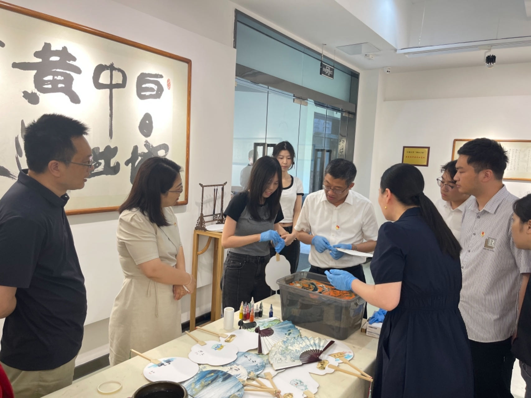 师生体验非遗漆扇制作