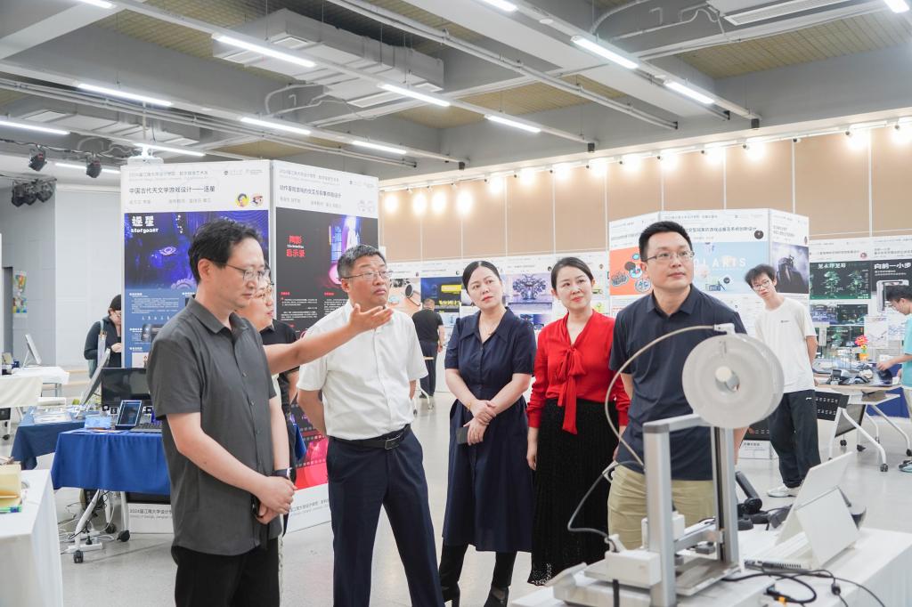 2024届“以应无穷”本科毕业设计作品展。陈校长对同学们的创意设计给予了高度评价,对展出的作品体现出的专业水准和师生们的辛勤付出表示肯定,希望更多的设计学子继续深耕设计领域,用设计的语言探索未知,以无尽的创意应对未来的挑战。